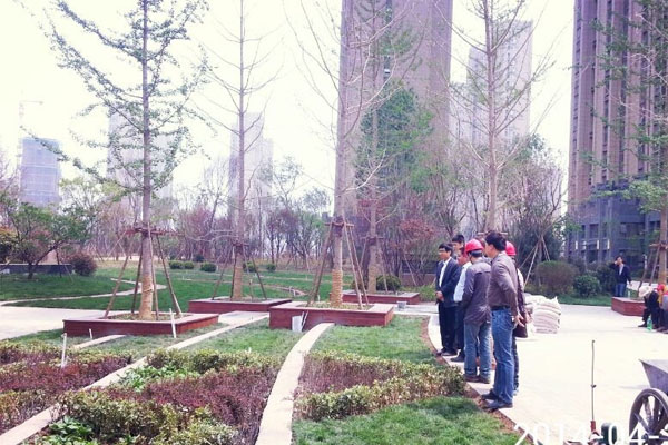 4月23日,上海綠地集團設計部人員考察園林公司綠地國際花都園林綠化施工情況。