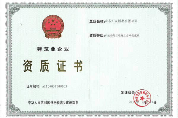 園林喜獲市政公用工程施工總承包貳級和城市道路照明工程專業承包叁級資質