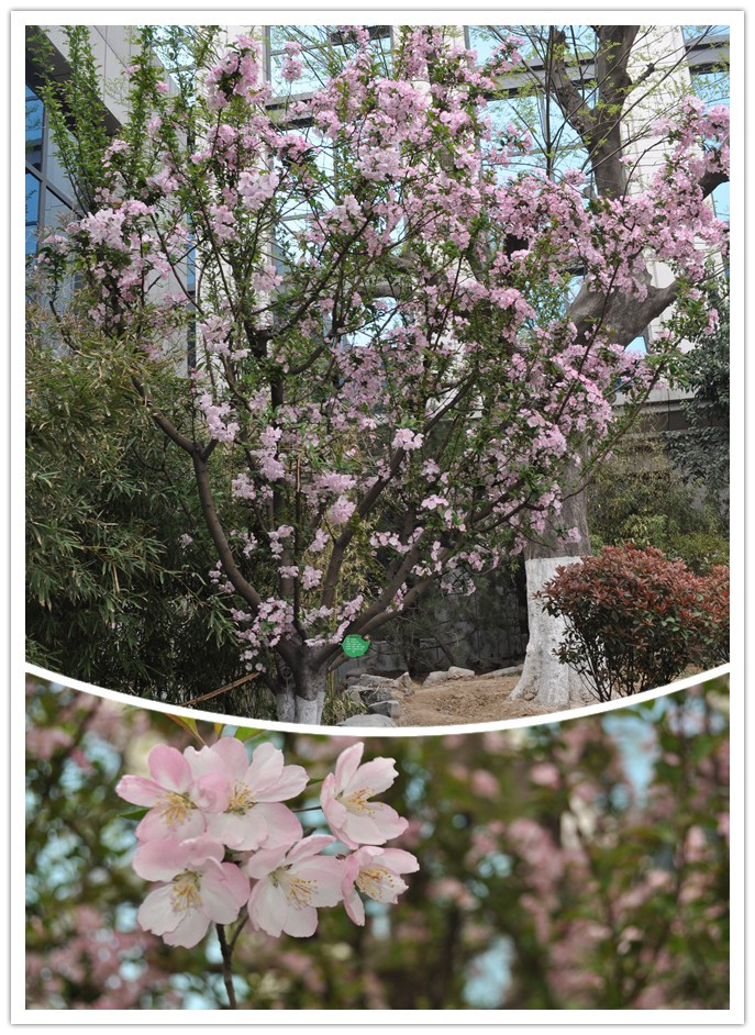 垂絲海棠是薔薇科蘋果屬的植物,屬落葉小喬木4~5月開放。垂絲海棠柔蔓迎風,垂英鳧鳧,如秀發遮面的淑女,脈脈深情,風姿憐人。宋代楊萬里詩中:“垂絲別得一風光,誰道全輸蜀海棠。風攪玉皇紅世界,日烘青帝紫衣裳。懶無氣力仍春醉,睡起精神欲曉妝。舉似老夫新句子,看渠桃杏敢承當。”形容妖艷的垂絲海棠鮮紅的花瓣把藍天、天界都攪紅了,閃爍著紫色的花萼如紫袍,柔軟下垂的紅色花朵如喝了酒的少婦,玉肌泛紅,嬌弱乏力。其姿色、妖態更勝桃、李。垂絲海棠性喜陽光,不耐陰,也不甚耐寒,愛溫暖濕潤環境,適生于陽光充足、背風之處,土壤要求不嚴,不耐水澇。海棠不僅花色艷麗,其果實亦玲瓏可觀。至秋季果實成熟,紅黃機映高懸枝間,恰似紅燈點點,乘風蕩漾,別具風姿。