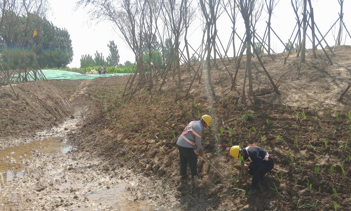 齊河G309景觀綠化工程開(kāi)始栽植水生植物