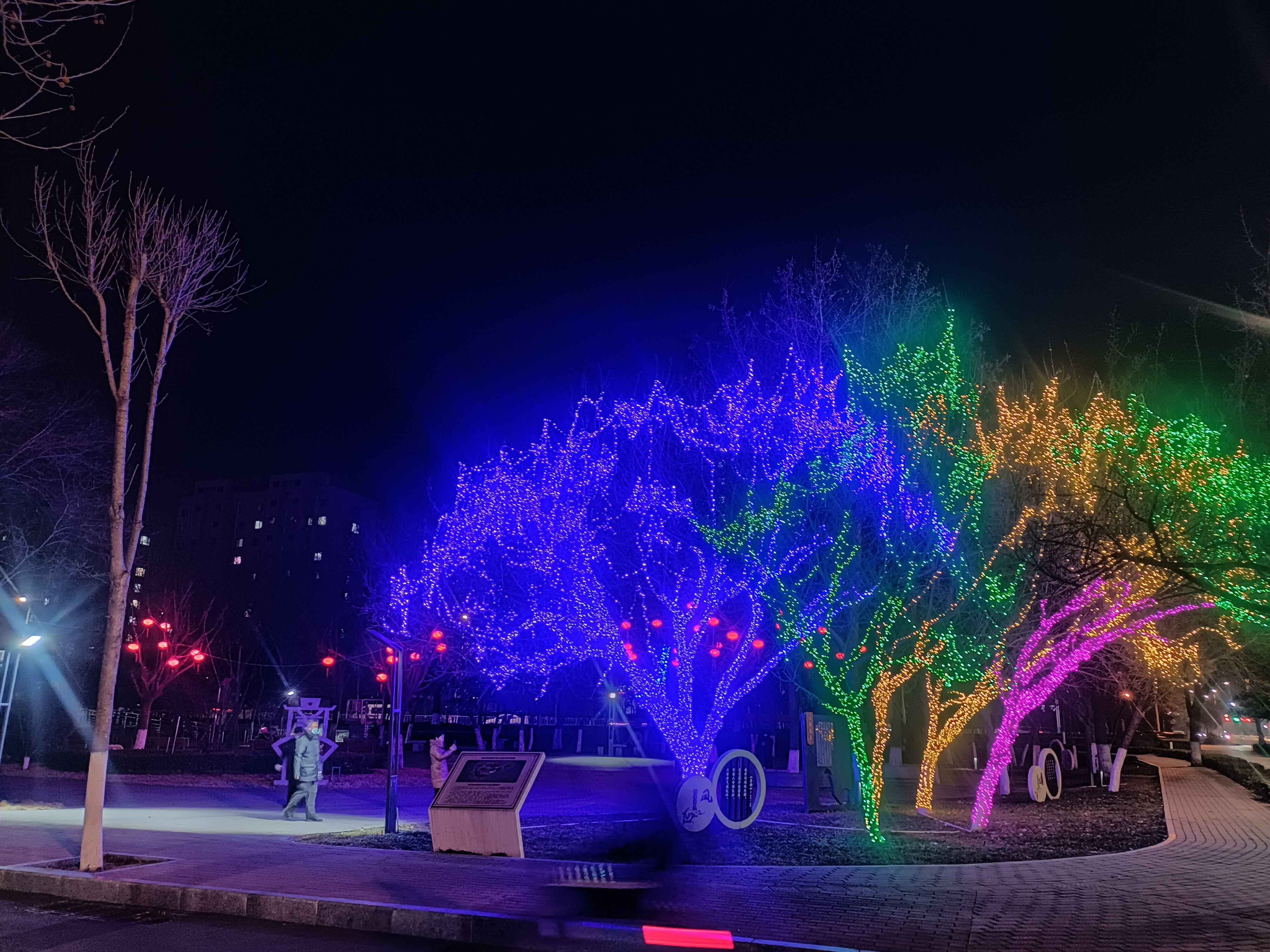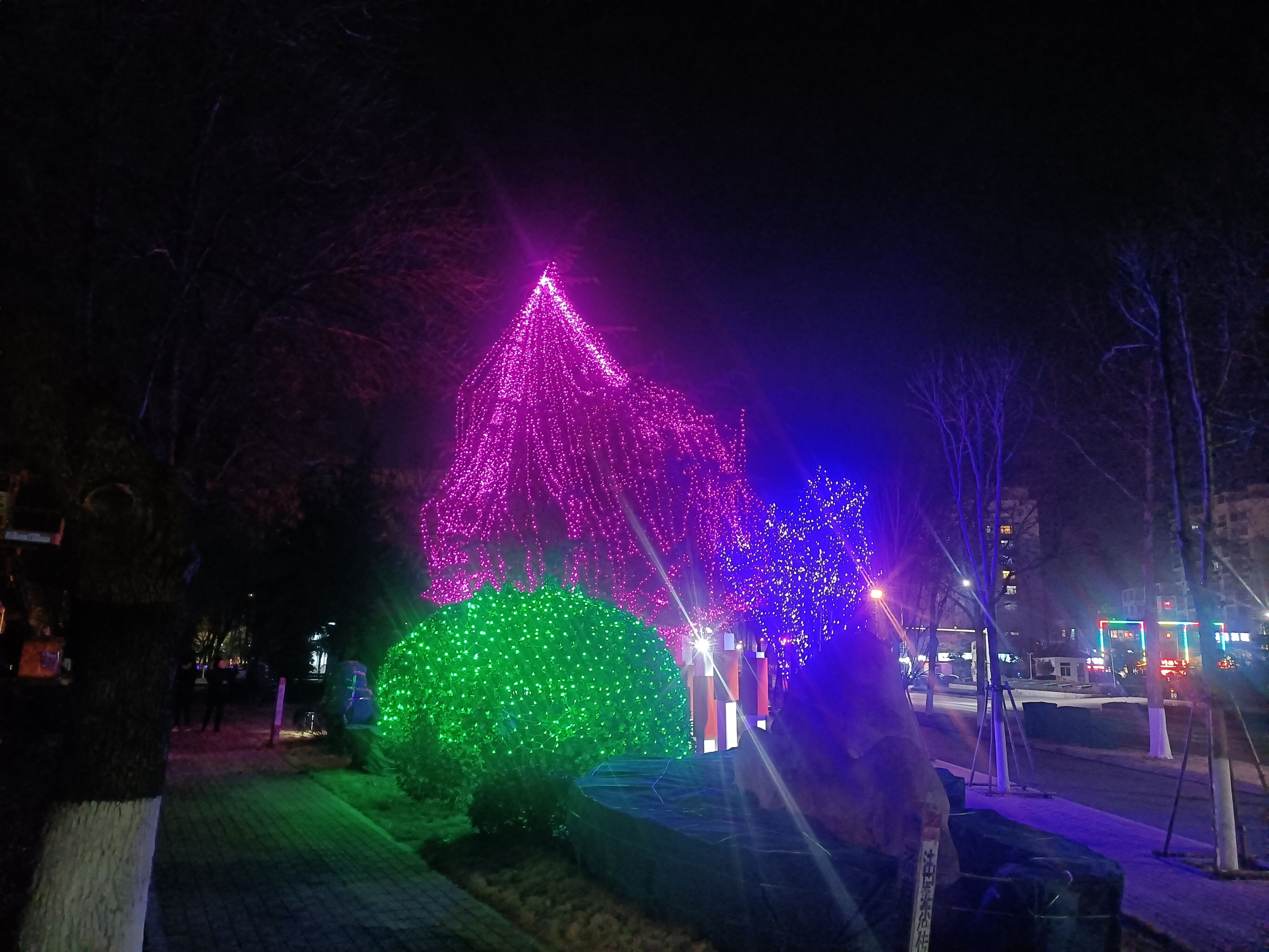 該亮化項目18日接到任務(wù),要求30日完成任務(wù)。項目人員集中合力,于22日確定方案,投入充足的人力、物力、材力,在不到兩周的時間里,全面突擊完成安裝LED燈串約5000套、LED網(wǎng)燈約1100套、LED燈球430套、發(fā)光燈籠300套、LED流星雨燈管800套、敷設(shè)線纜約9600米,順利完成本次任務(wù)。