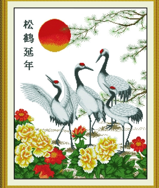 十字繡作品 松鶴延年
