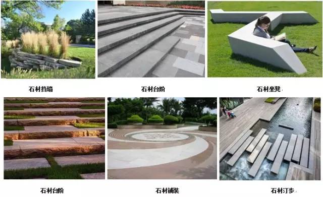景觀中常見天然石材有:花崗巖、大理石、砂巖、板巖等