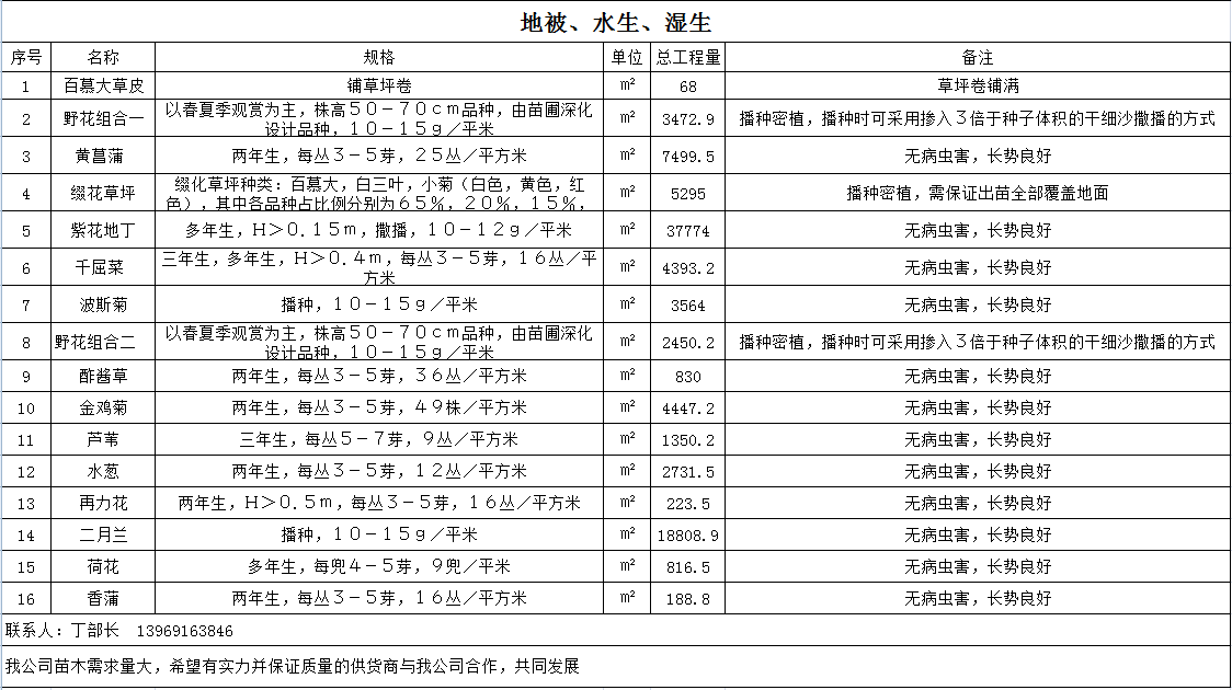 齊河G309景觀綠化工程苗木需求總量